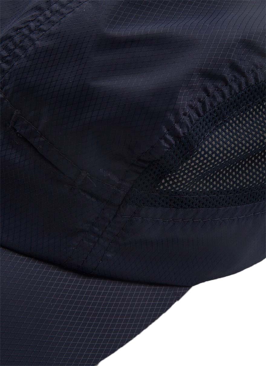 汗を多くかくシーズンに重宝する、メッシュ構造の5パネルキャップ。フロントにブランドロゴを配し、ドローコードで調節可能。