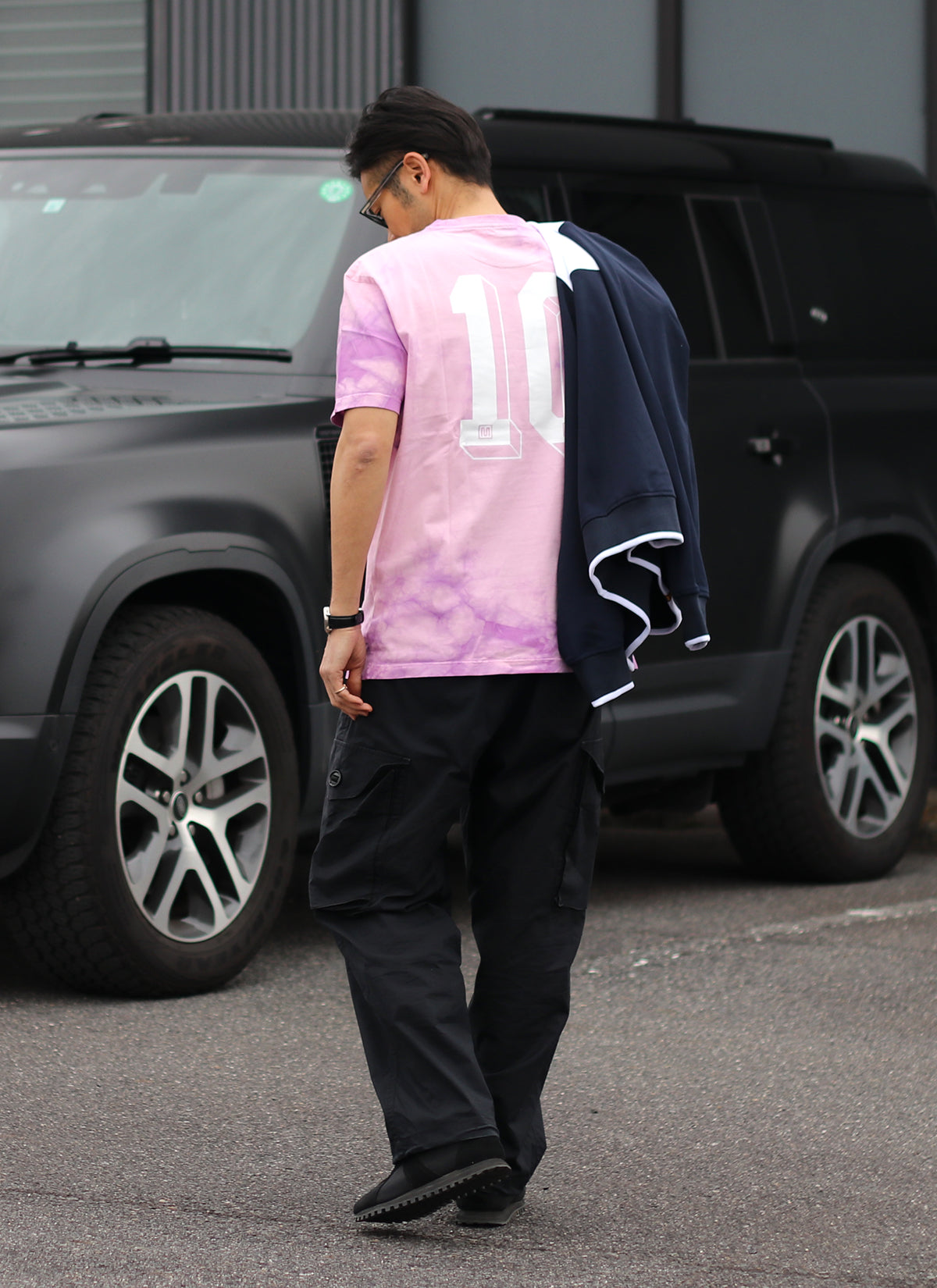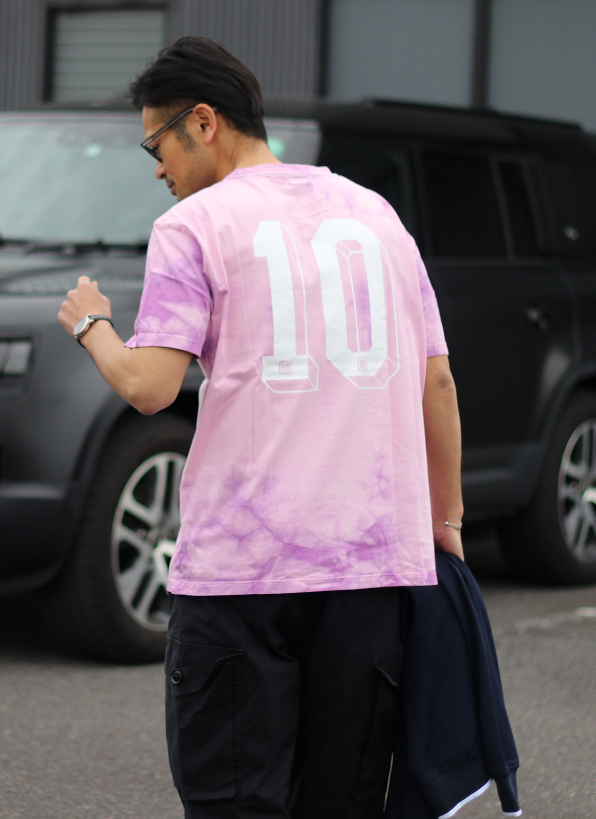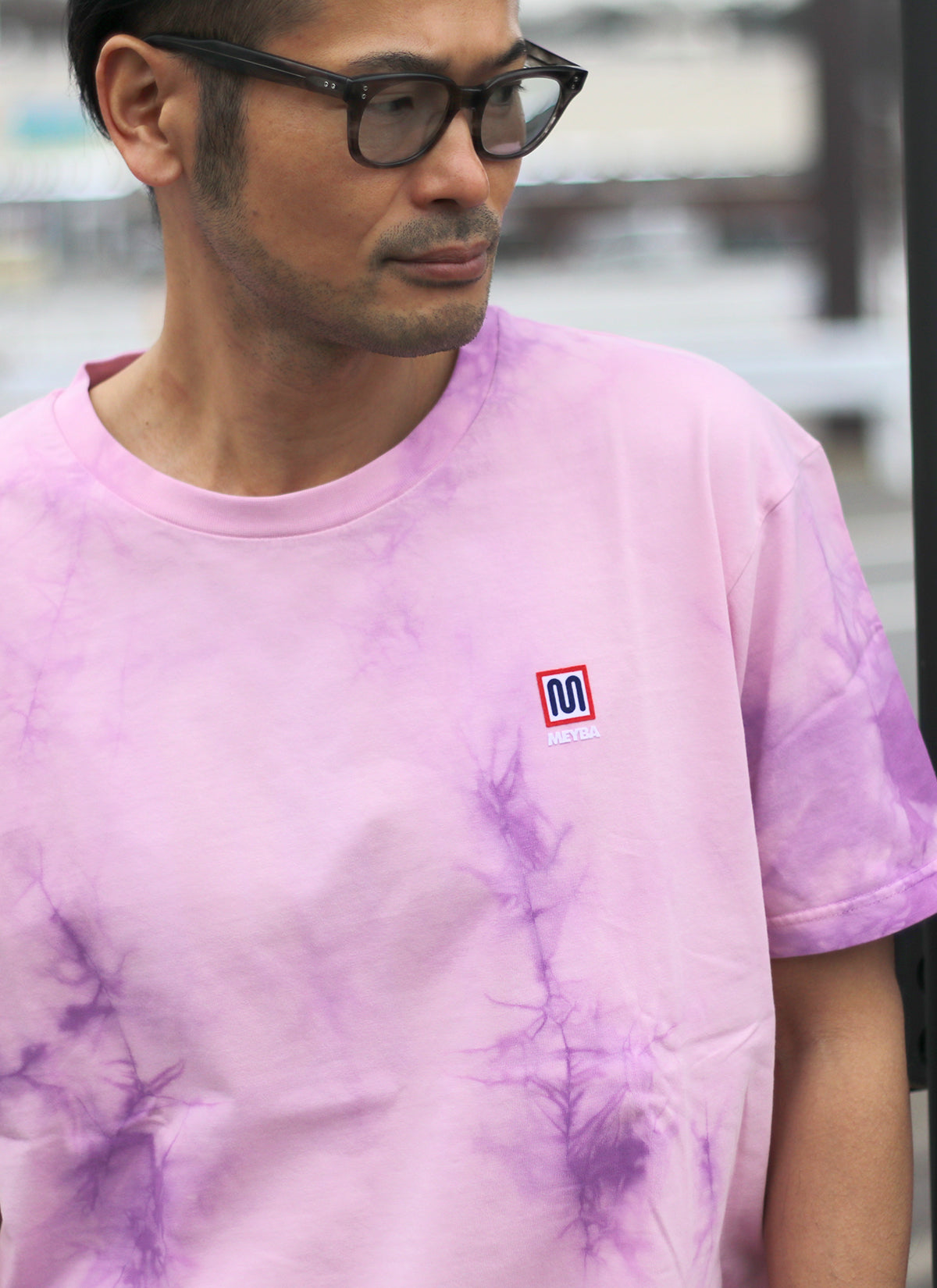 MEYBAのワンポイントロゴTシャツにタイダイ染め加工を施した半袖Tシャツ。Tシャツ一着でしっかりと個性が演出できるデザイン。背面のナンバープリントがインパクト大。一点一点染め具合が異なるランダムな色合いが特徴です。