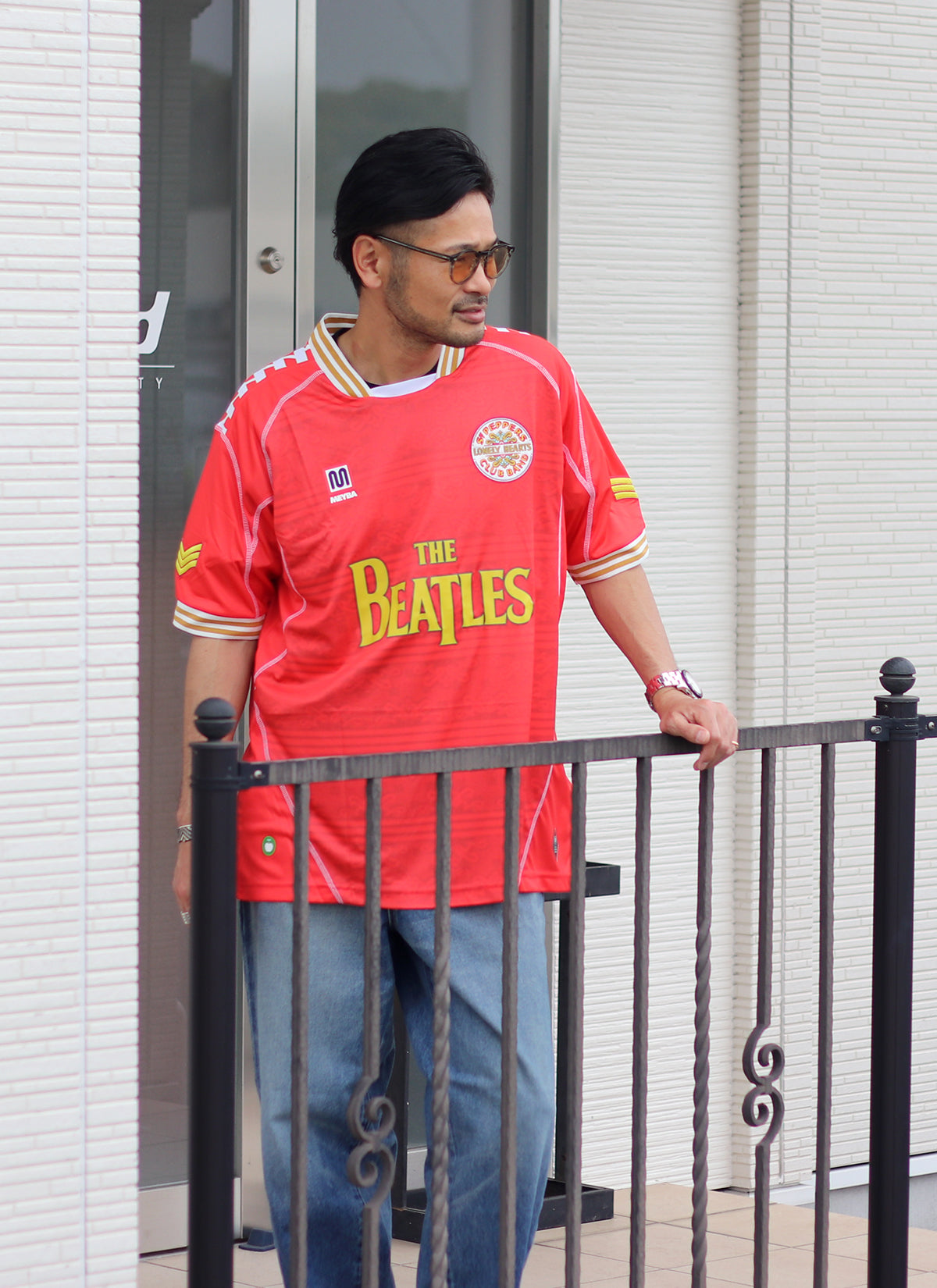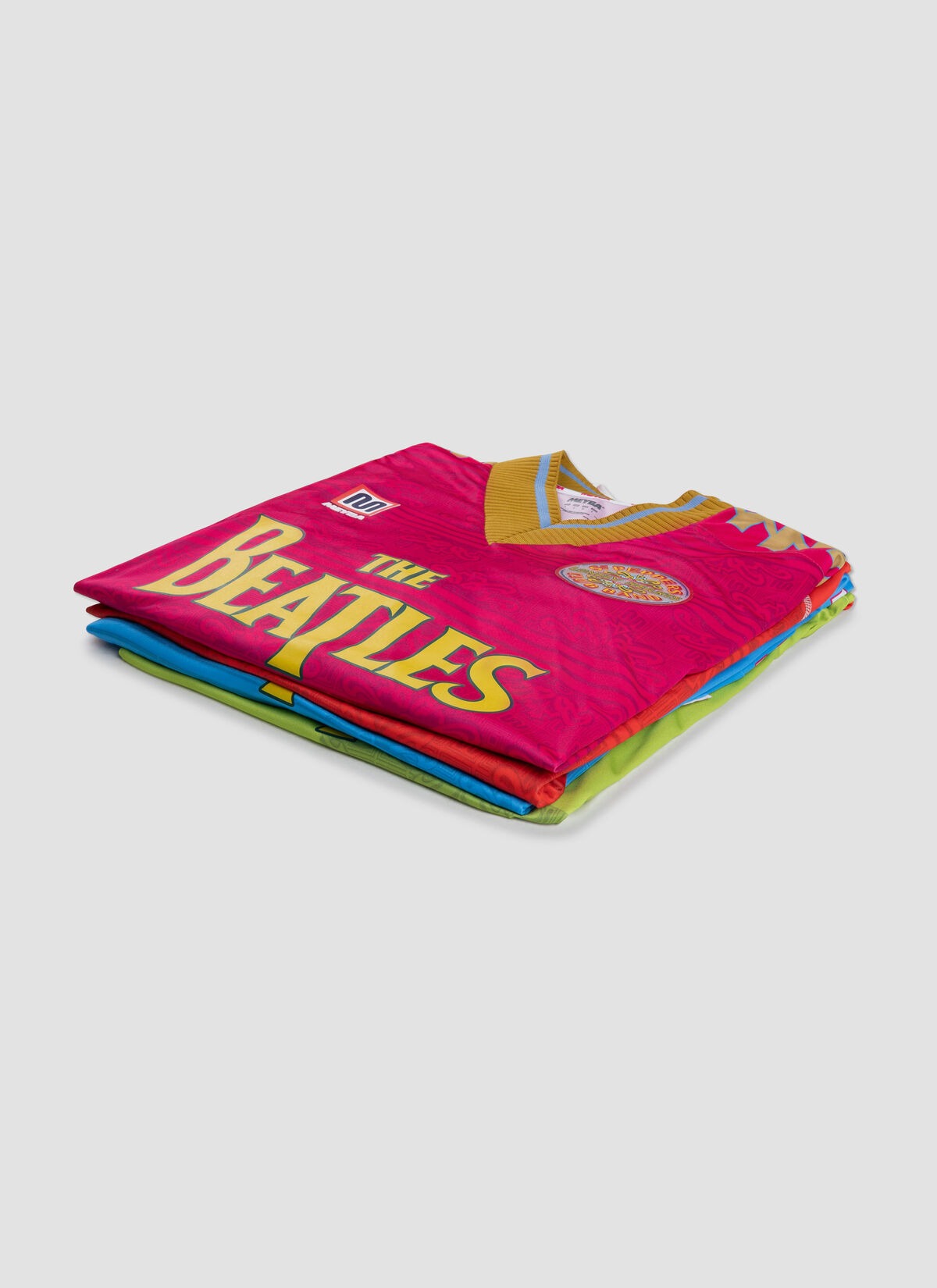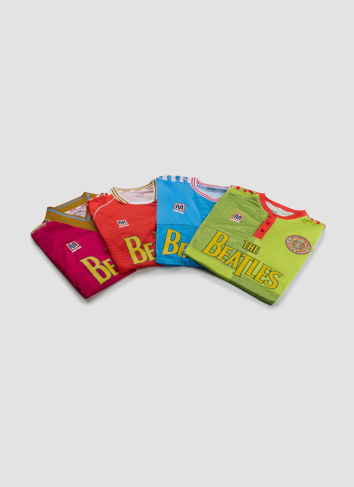 ザ・ビートルズとの限定コラボレーションであるサッカーシャツ4枚セット(バッグ付属)。