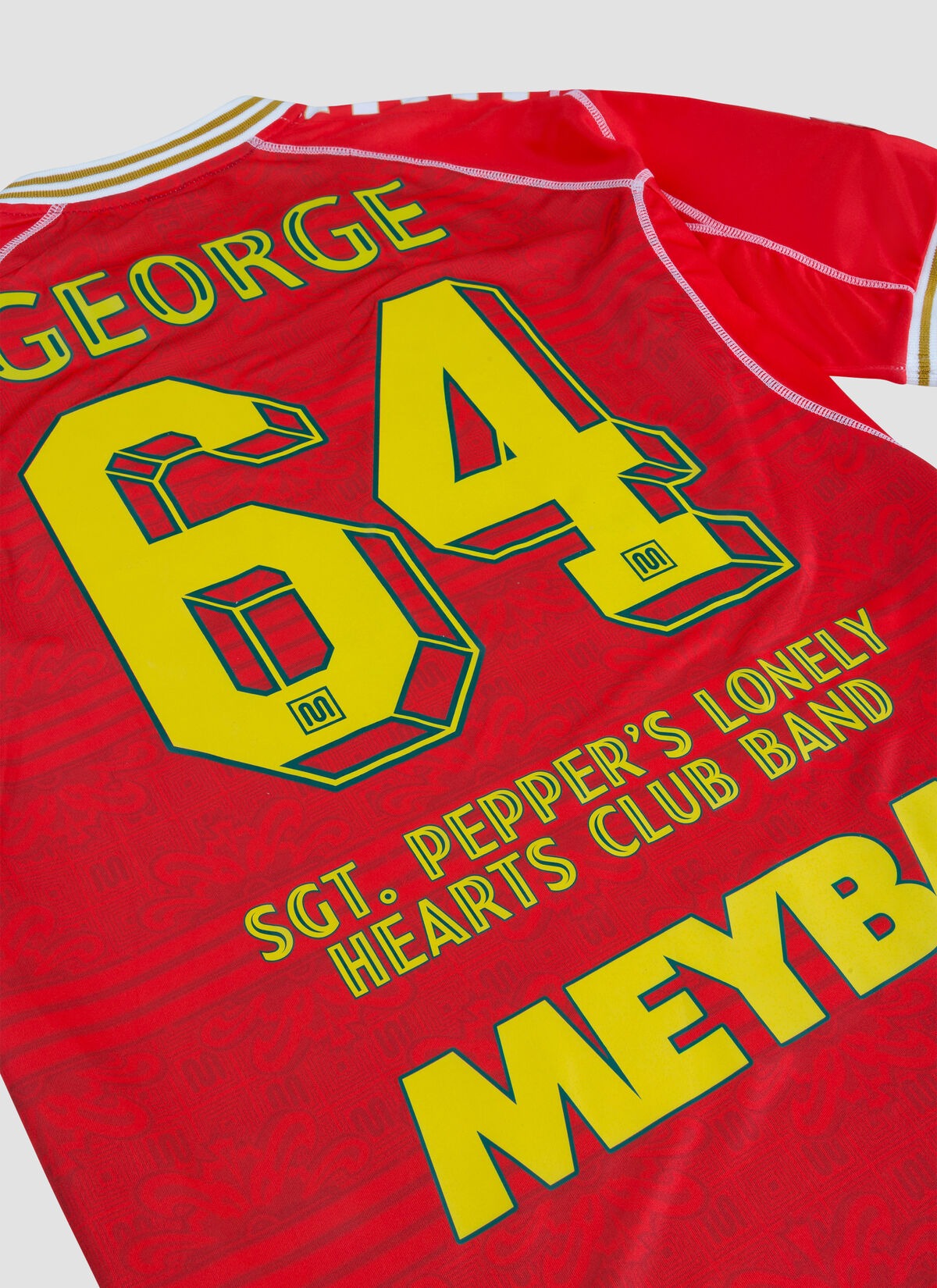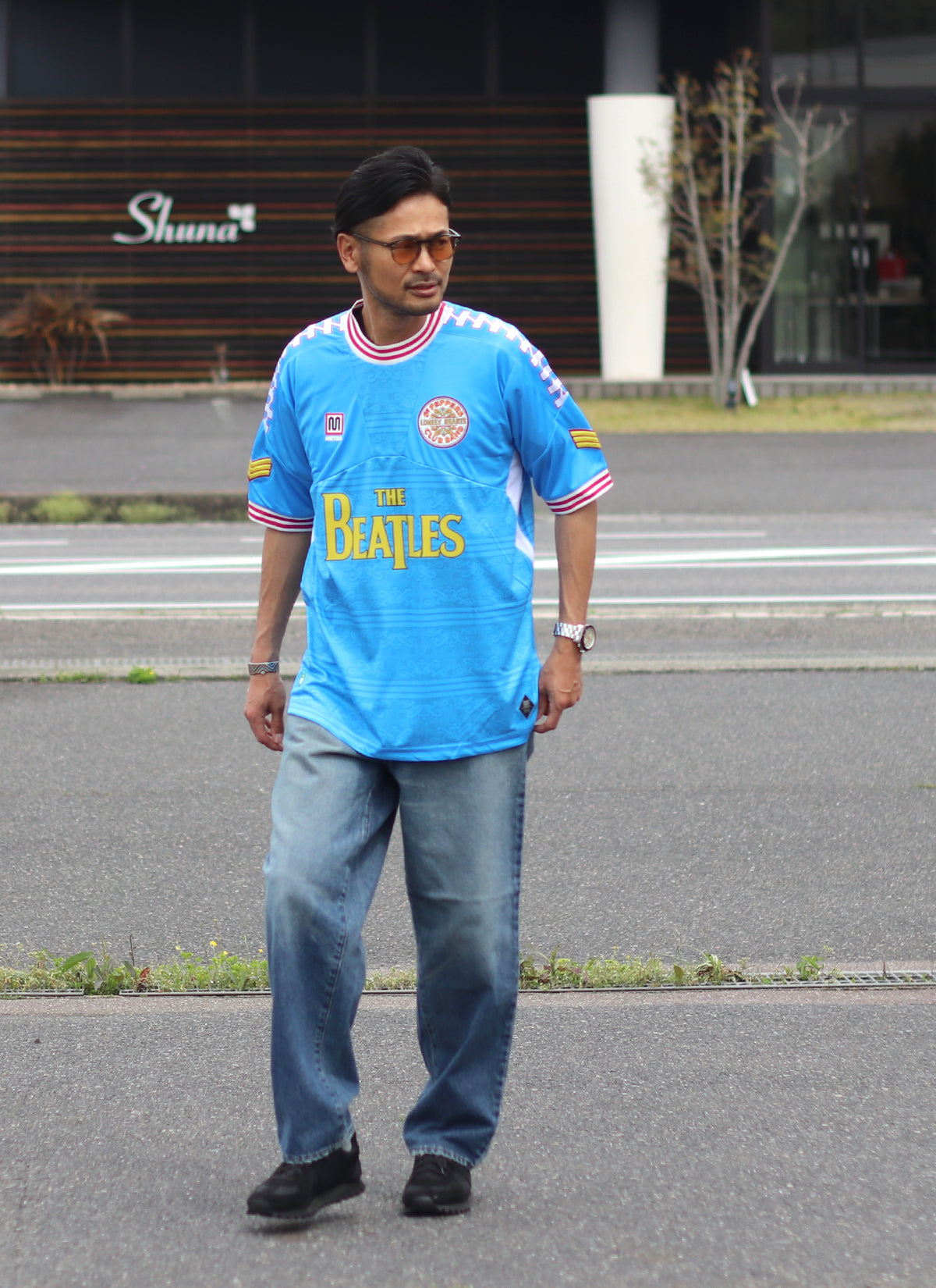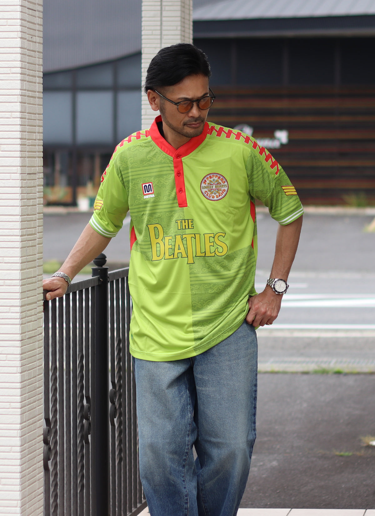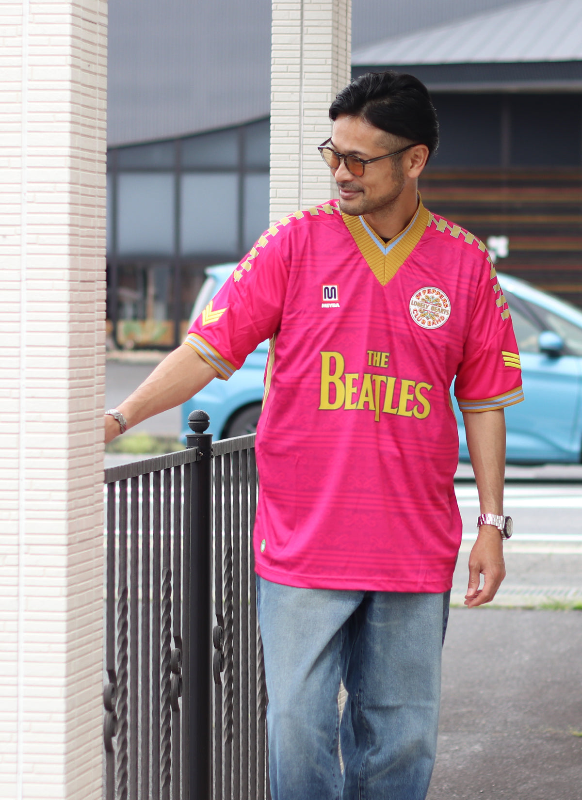 ザ・ビートルズとの限定コラボレーションであるサッカーシャツ4枚セット(バッグ付属)。