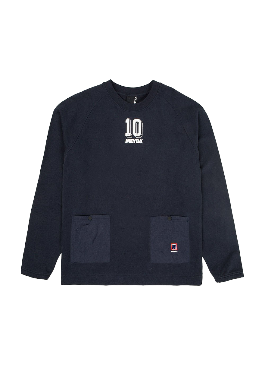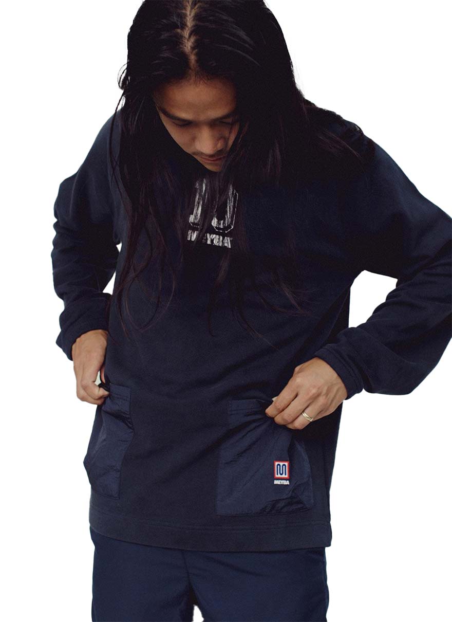 ややゆとりのあるフィット感のスウェットプルオーバー。フロントに特徴的な2つのナイロントリムパッチポケットを配置し、デザインはもちろん鍵や携帯電話などを入れるのに最適です。ラグランスリーブにスプリットヘムと動きやすく機能性にも優れています。