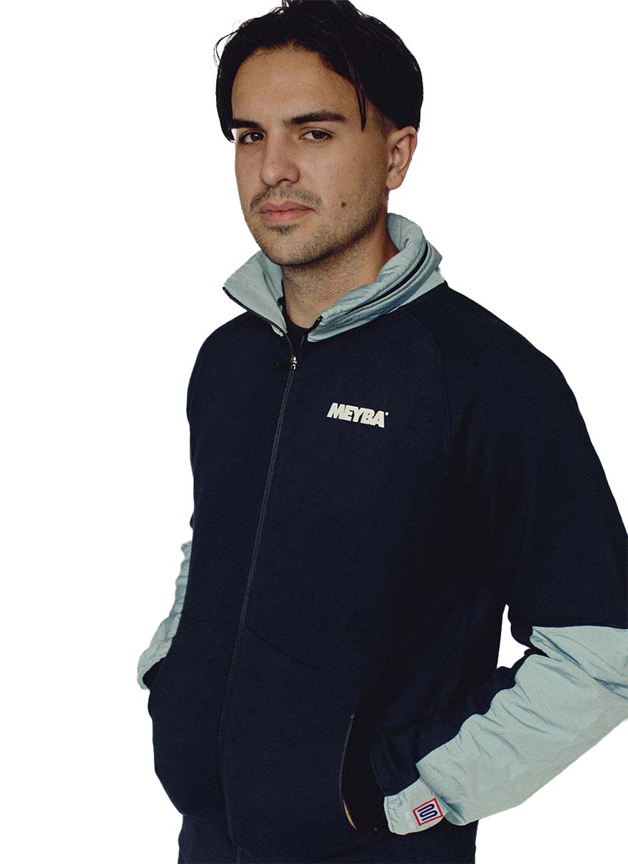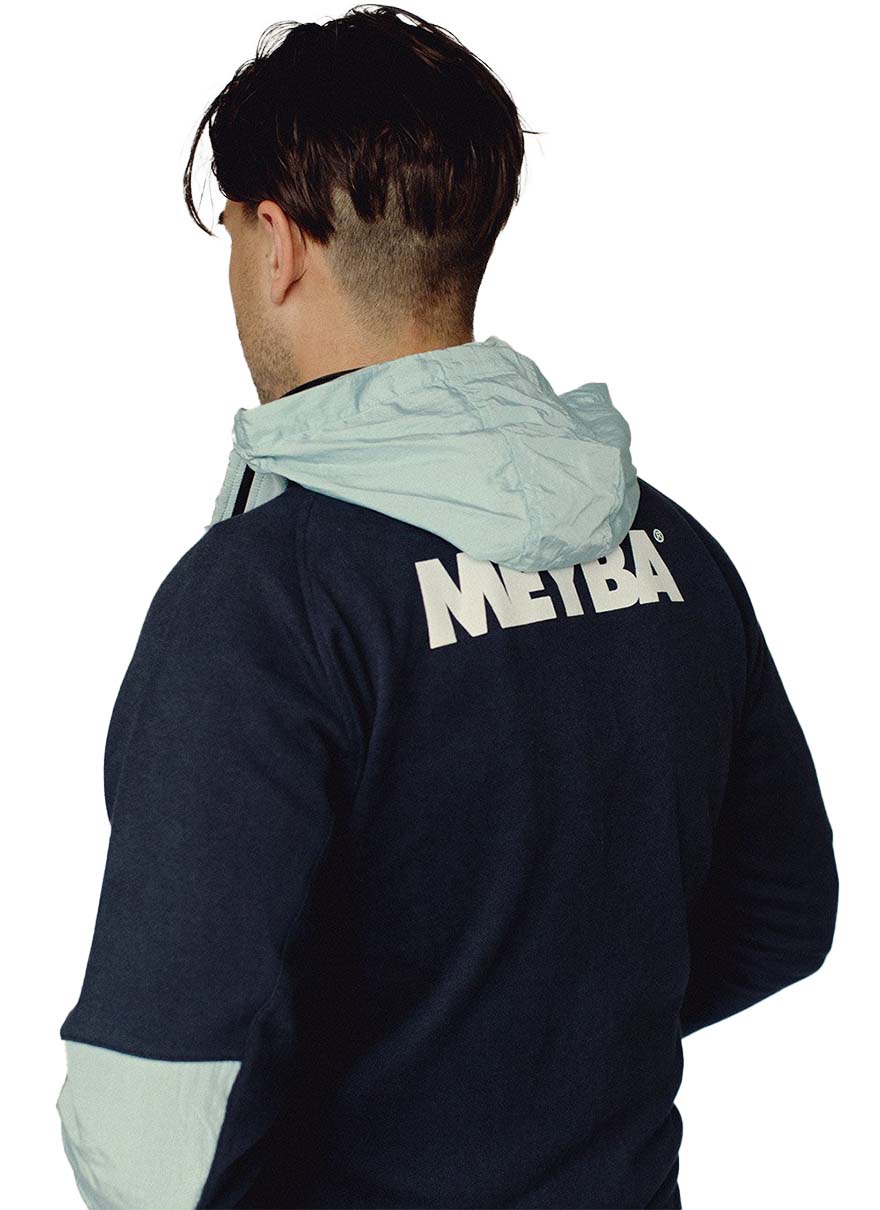 スタイリッシュに着こなせるスリムタイプのフルジップナイロントリムスエット。ナイロン製の収納可能なフードやスリーブの切り返しなど細部にこだわり、フロントとバックに大きさの異なるロゴをプリント。