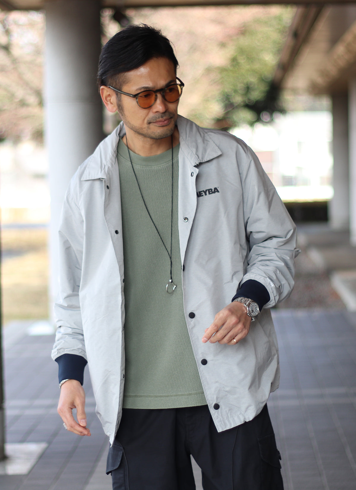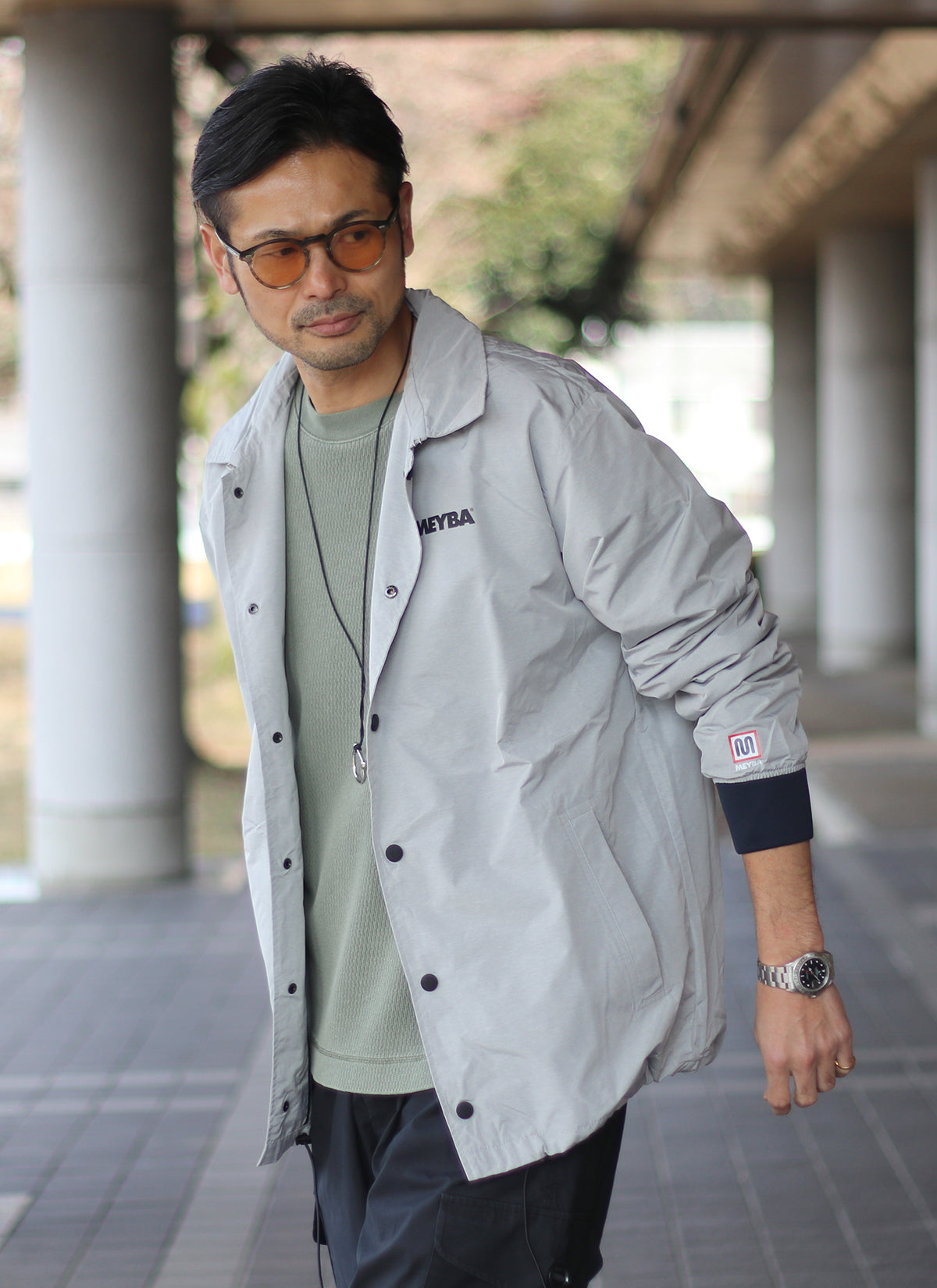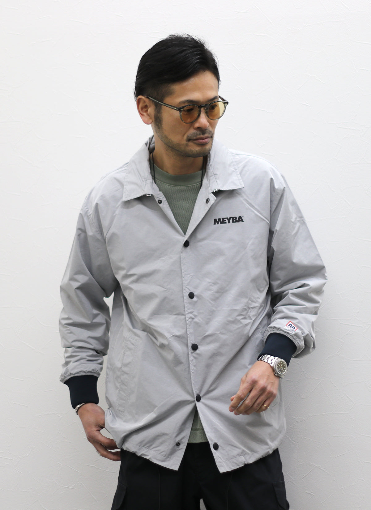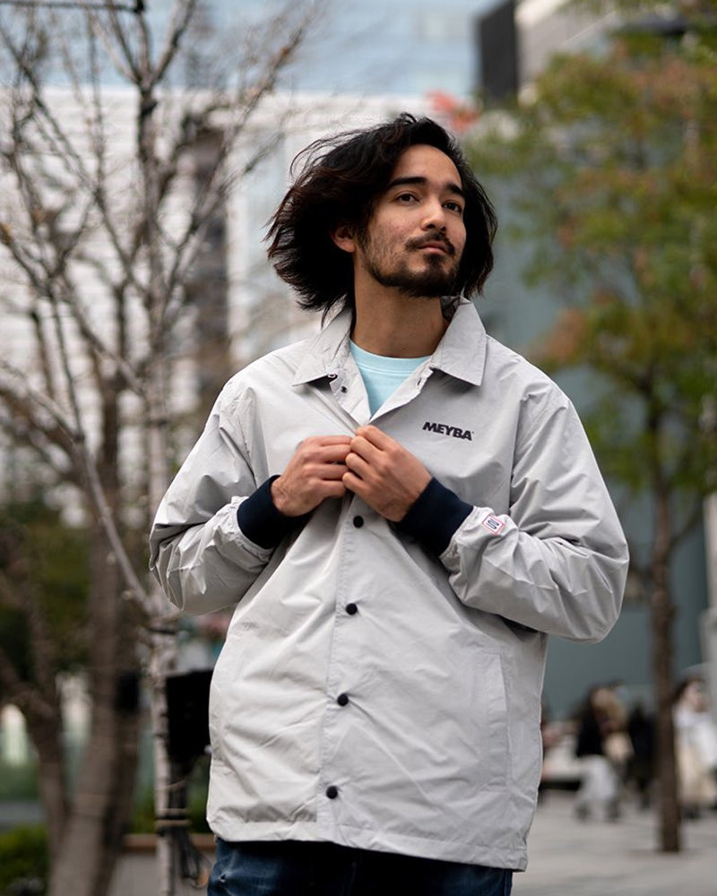 ライトグレーの色合いもコーチジャケットでは珍しく、休日カジュアルにもアクティブシーンにも活躍するアイテムです。