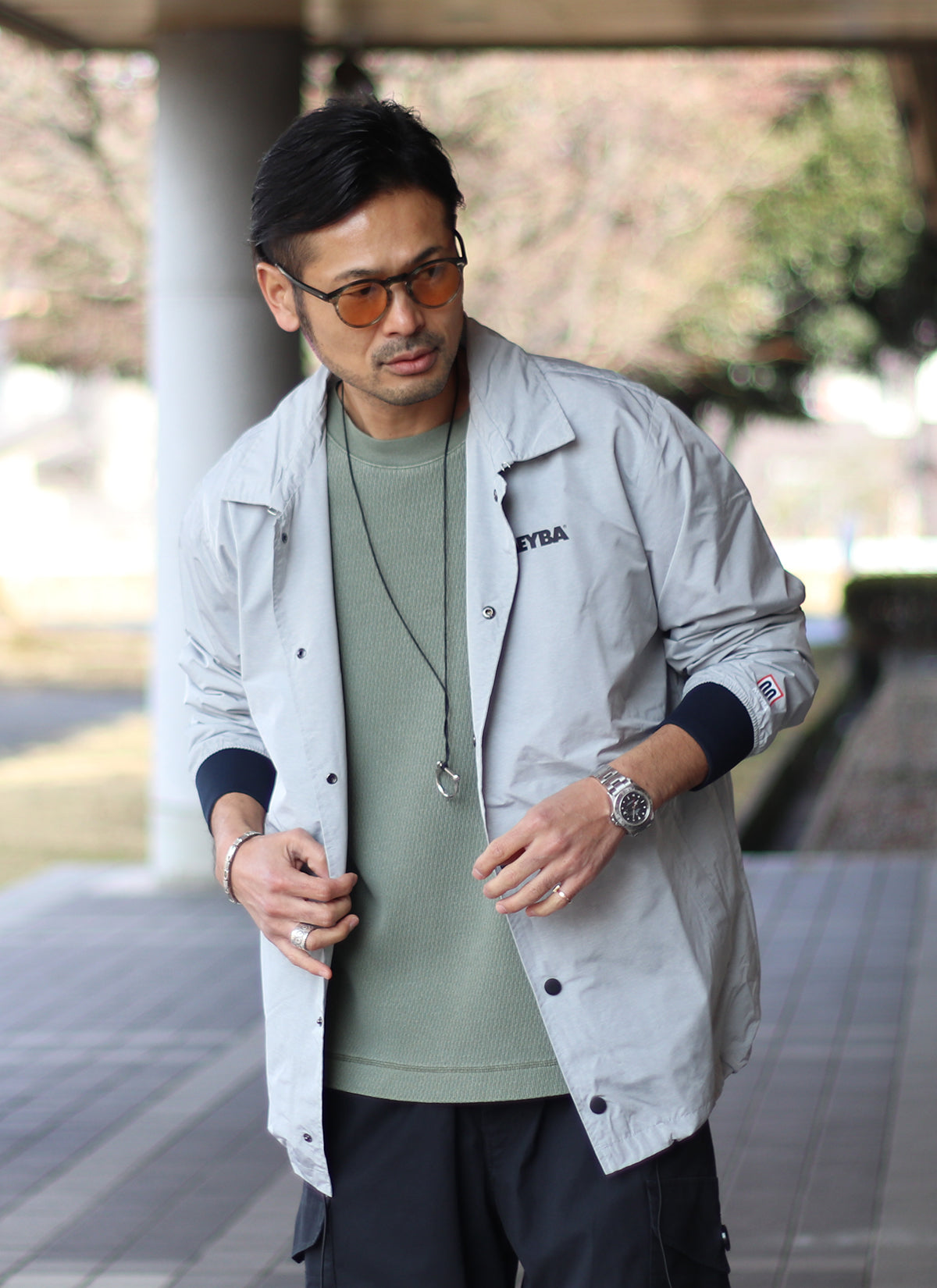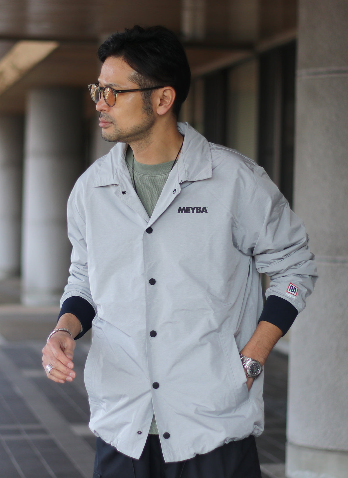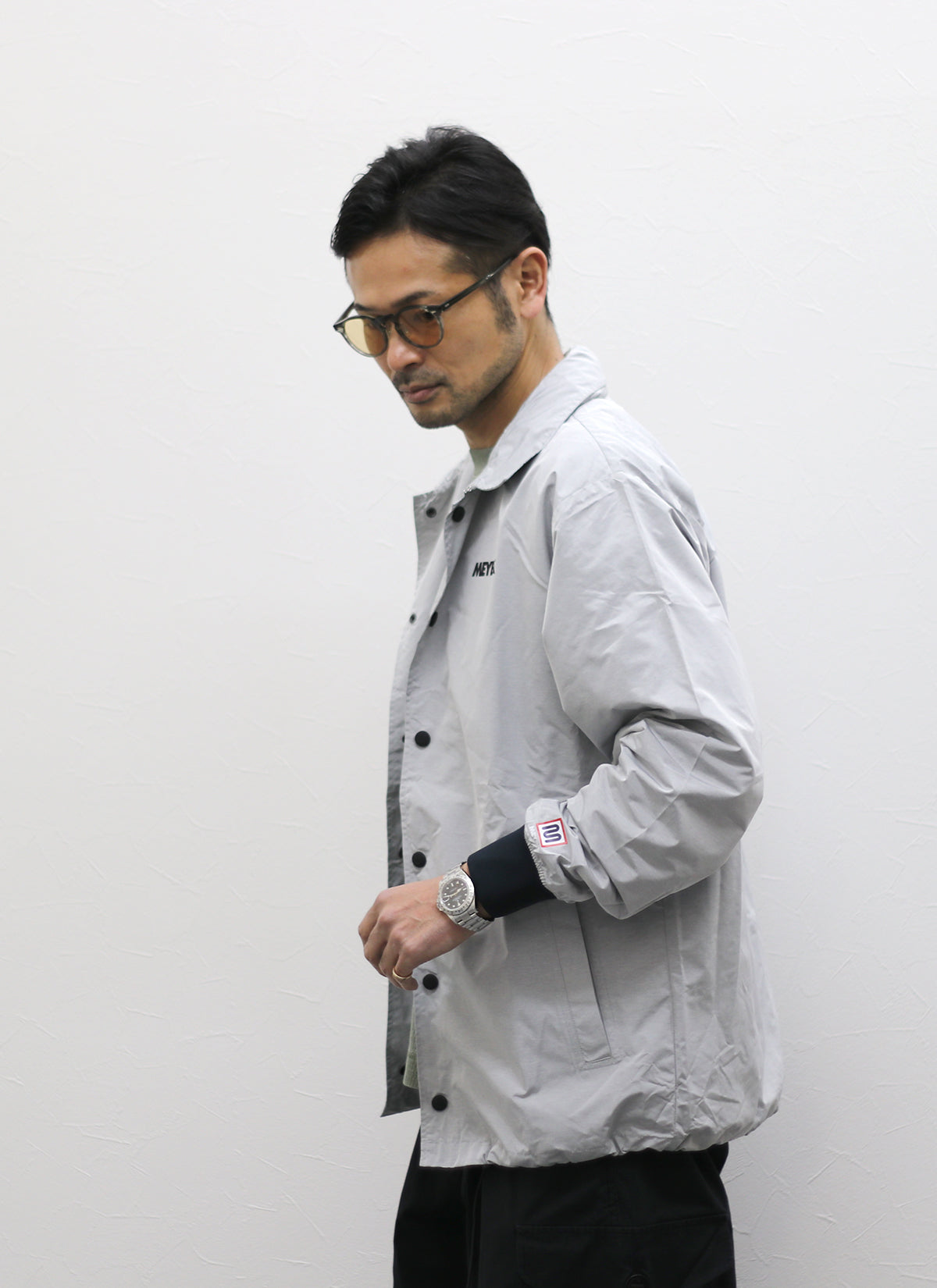 ライトグレーの色合いもコーチジャケットでは珍しく、休日カジュアルにもアクティブシーンにも活躍するアイテムです。