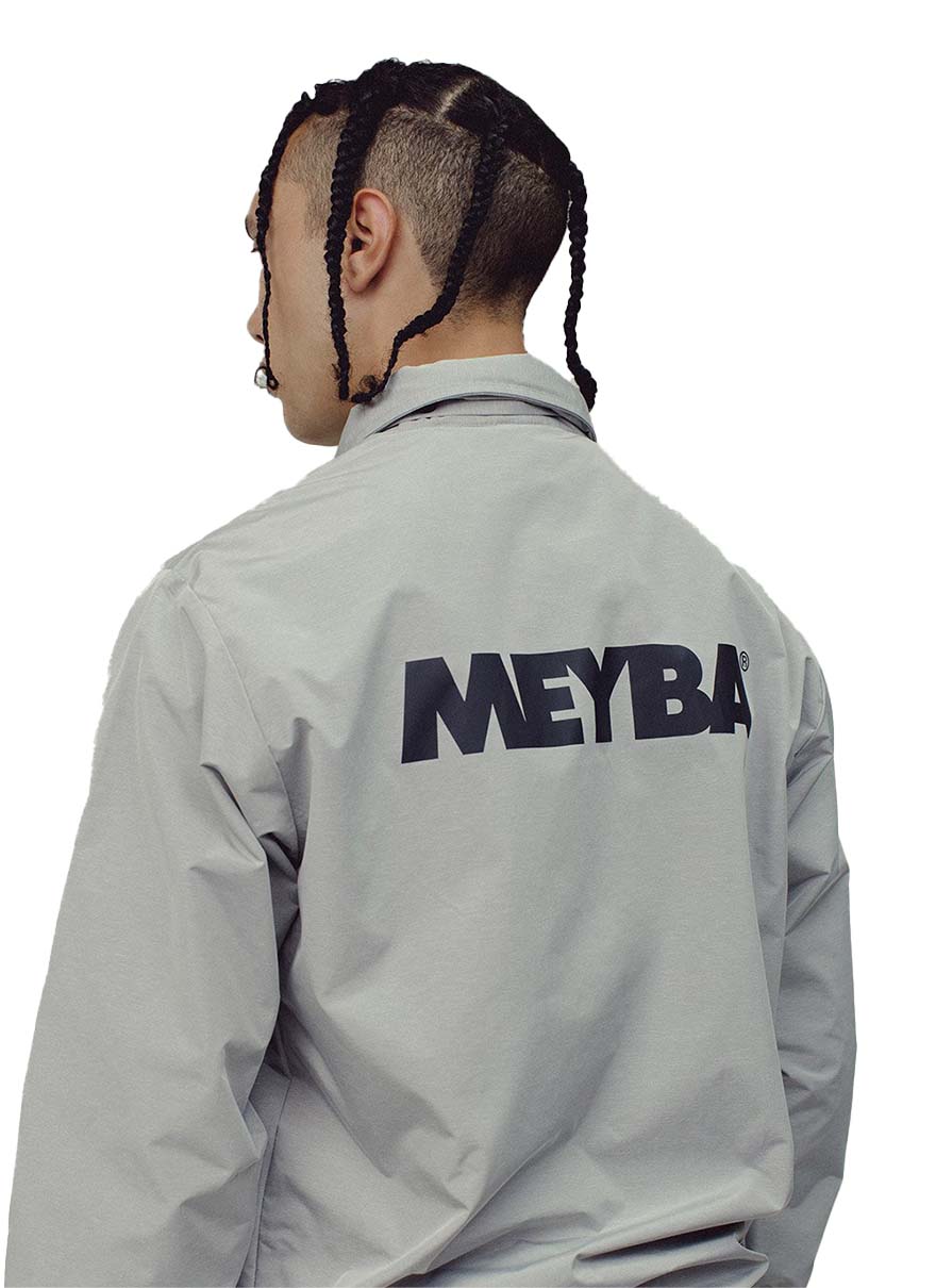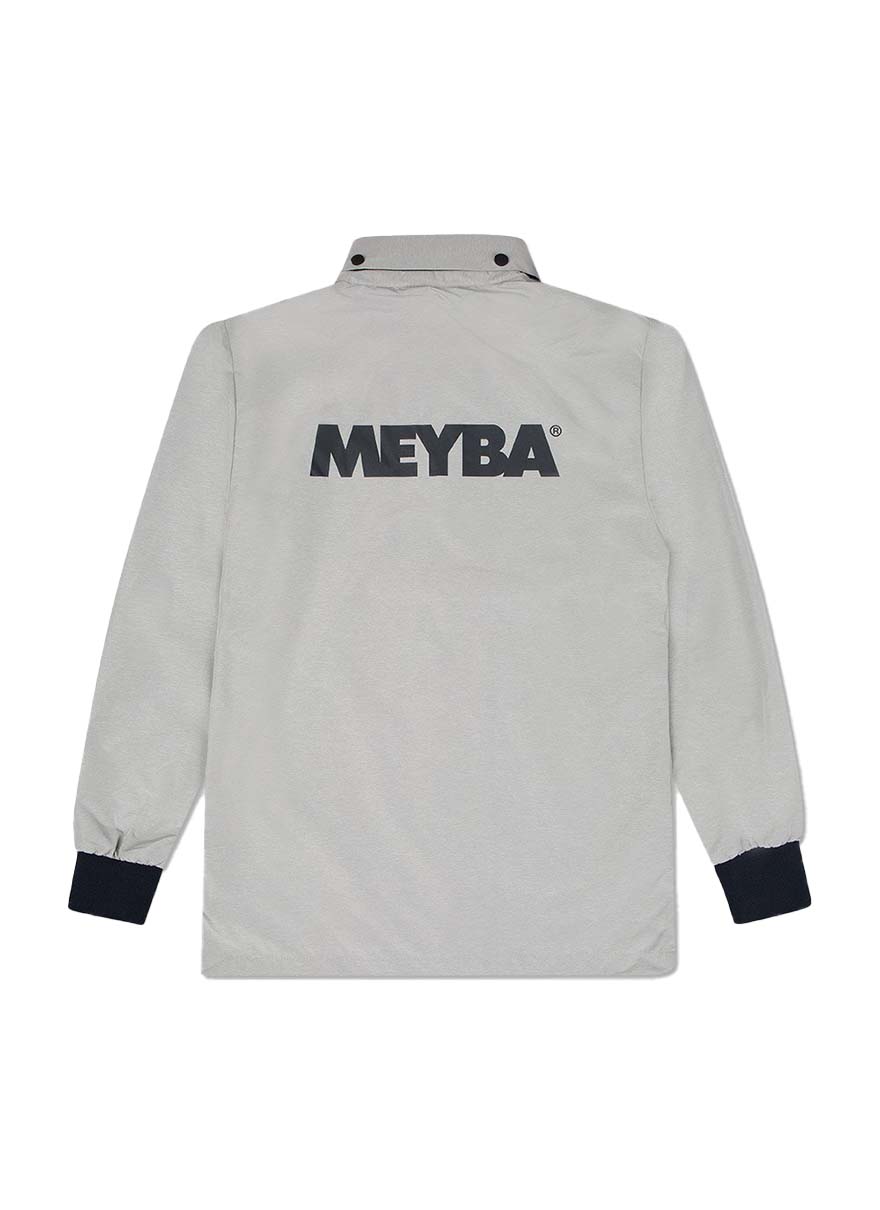 ベーシックなコーチジャケットながら、収納式のフードやリブ袖など細部にこだわりがを感じさせるデザインです。フロントとバックのロゴもポイント。