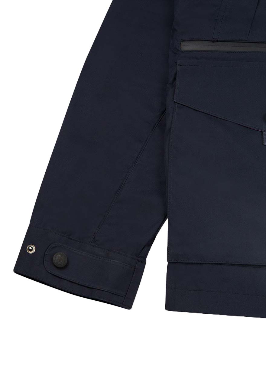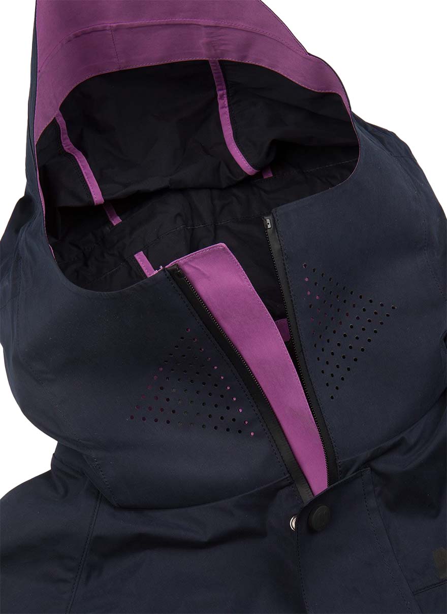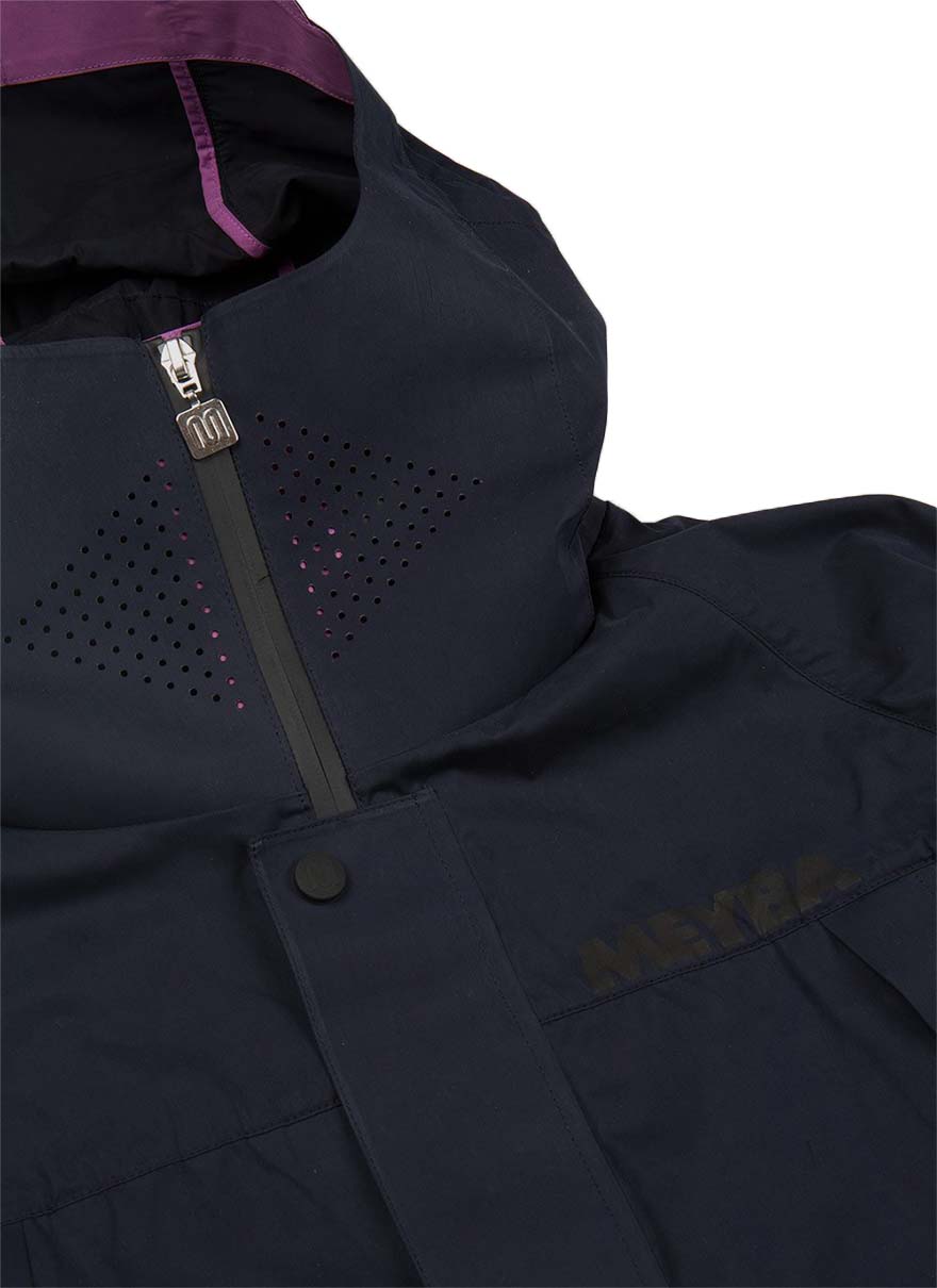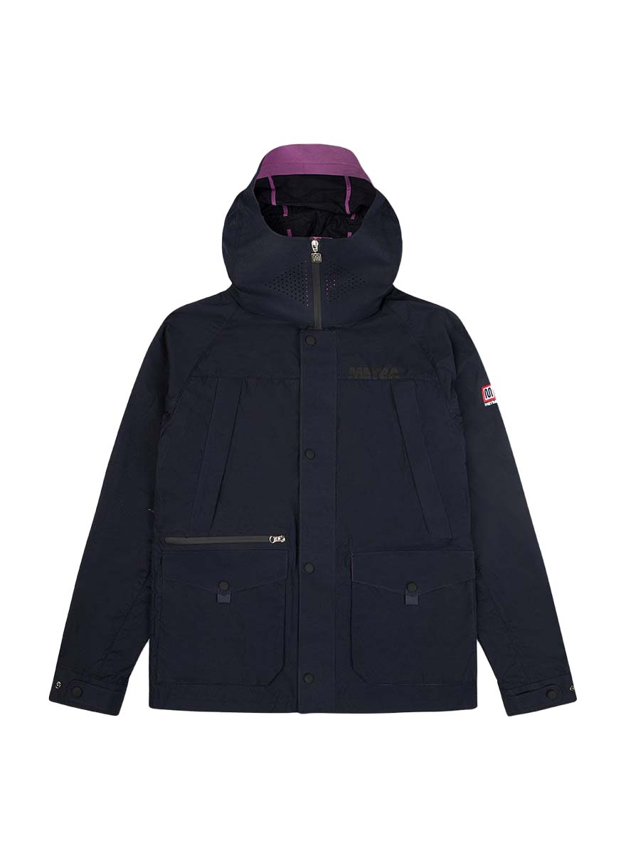 耐水性コーツイング生地に止水ジップと防水性に優れたジャケットで、雨や防寒にしっかりと対応できます。また、脇の下にベンチレーションが配置され蒸れの軽減や温度調整もできます。複数のポケットがあり使い勝手も最高です。ブランドロゴの入ったスナップボタンやレーザカットフェイスシールドなど細部にもこだわったアイテム。