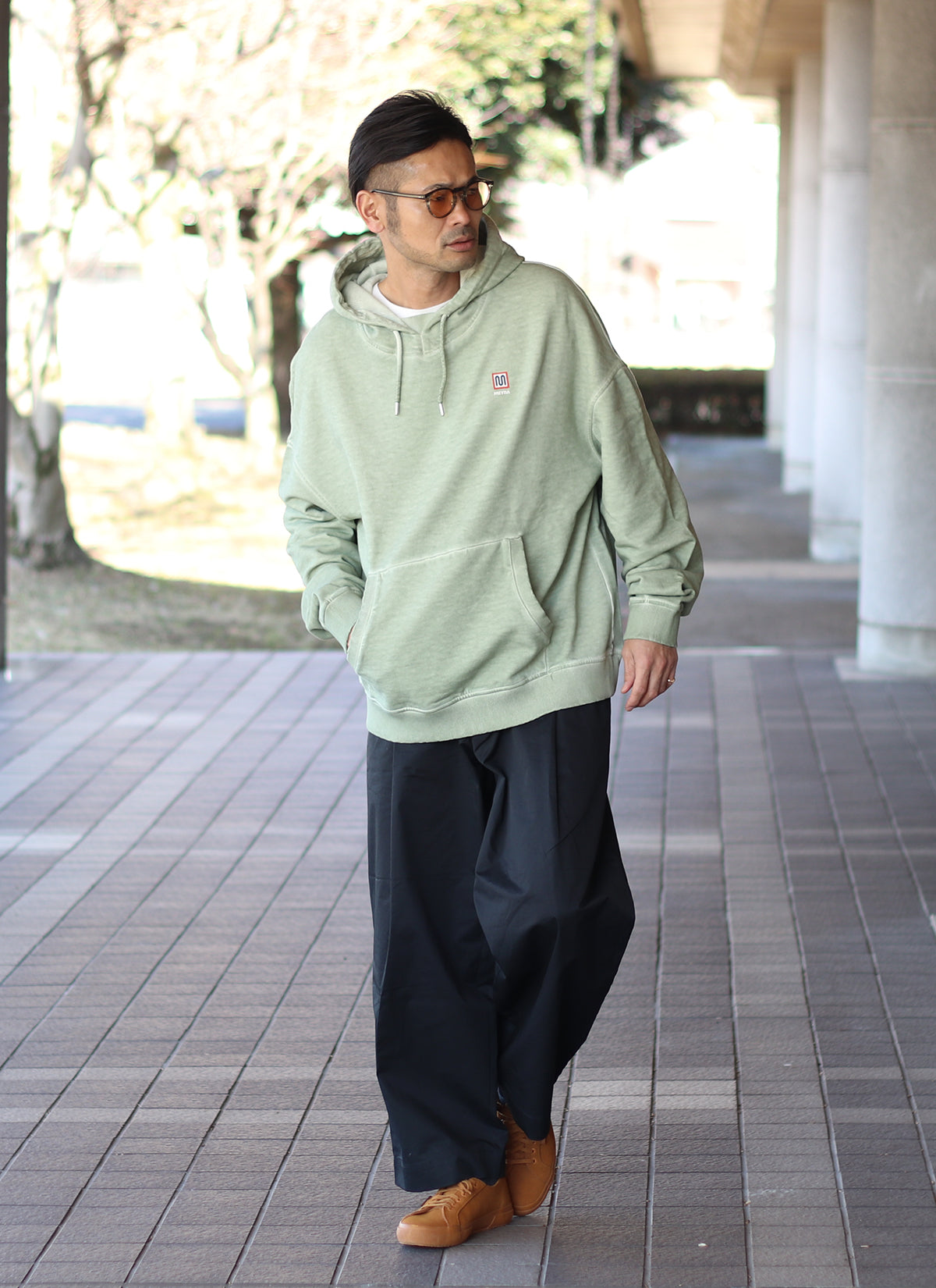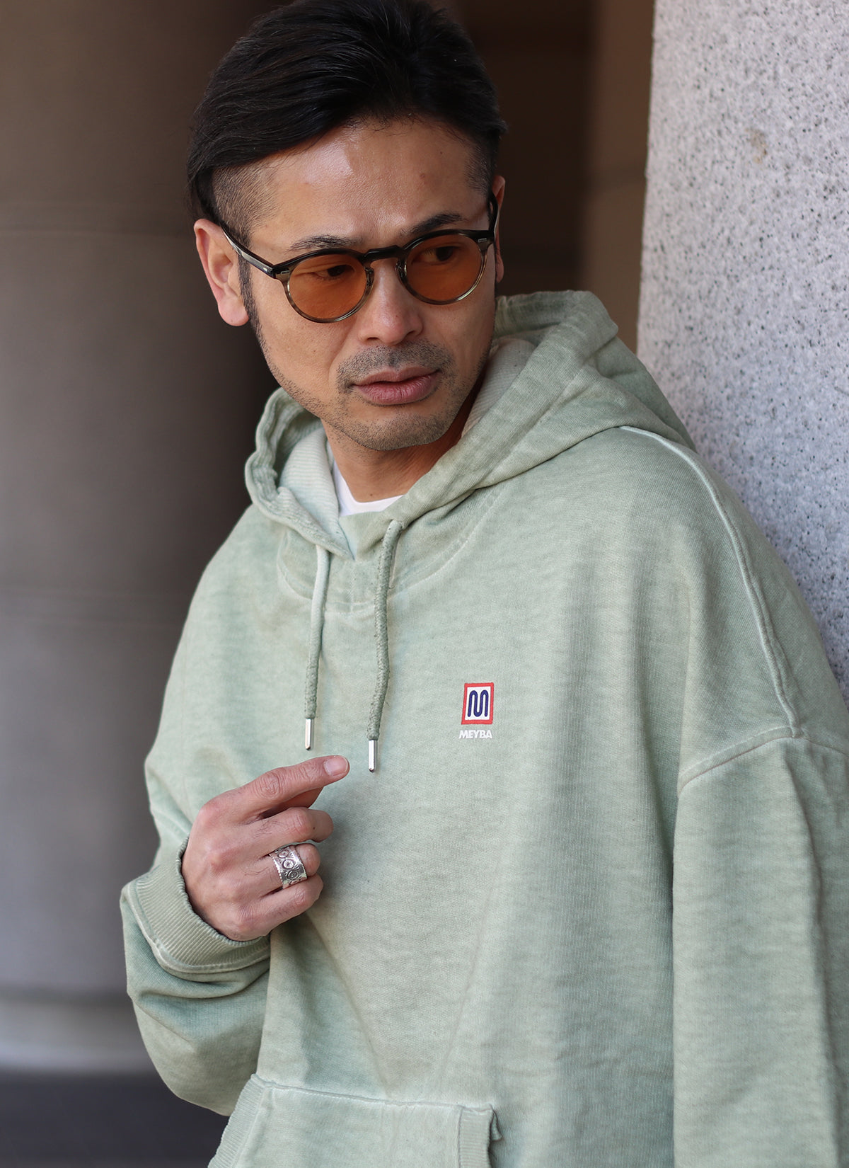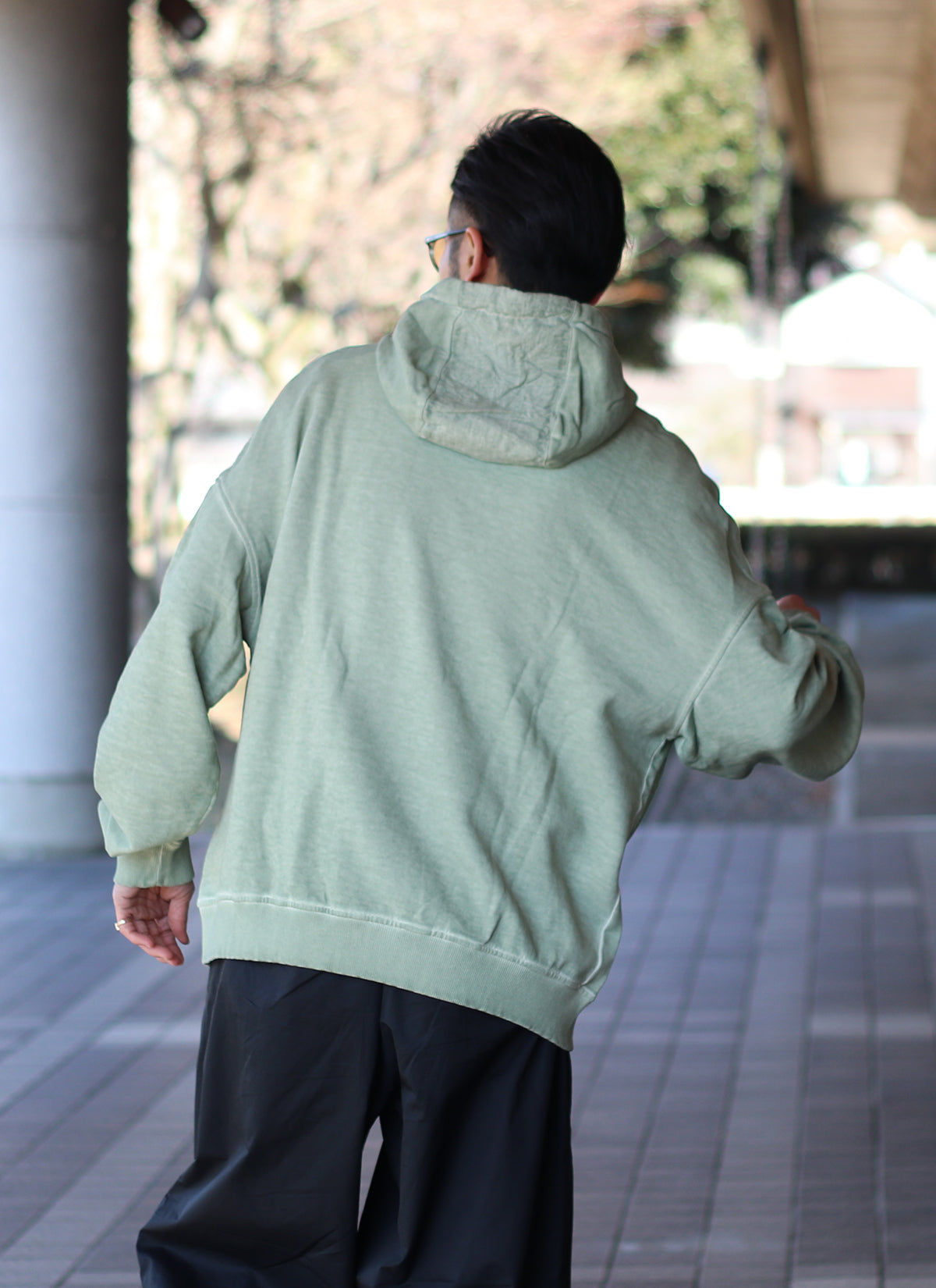 人気のオーバーサイズフーディーをコールドダイという特殊な染色加工を施し奥行きのある独特の色味を実現。
