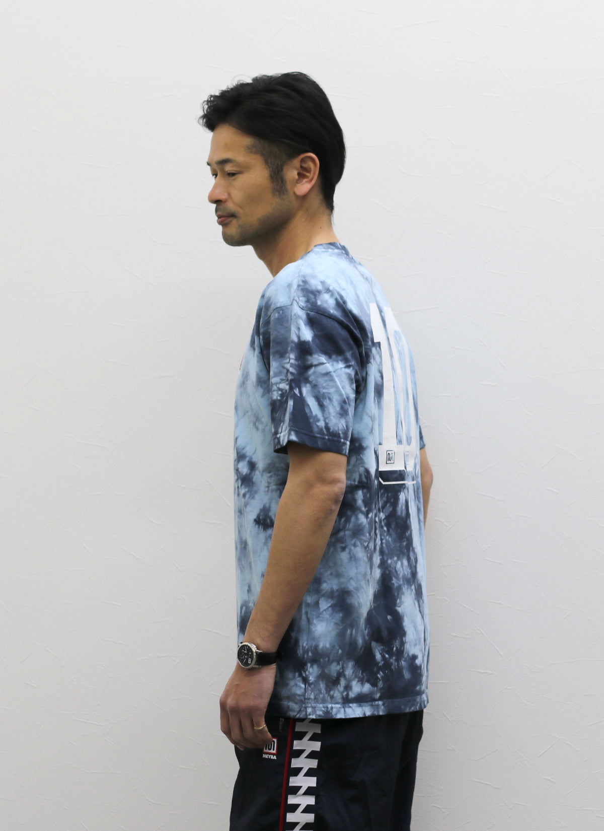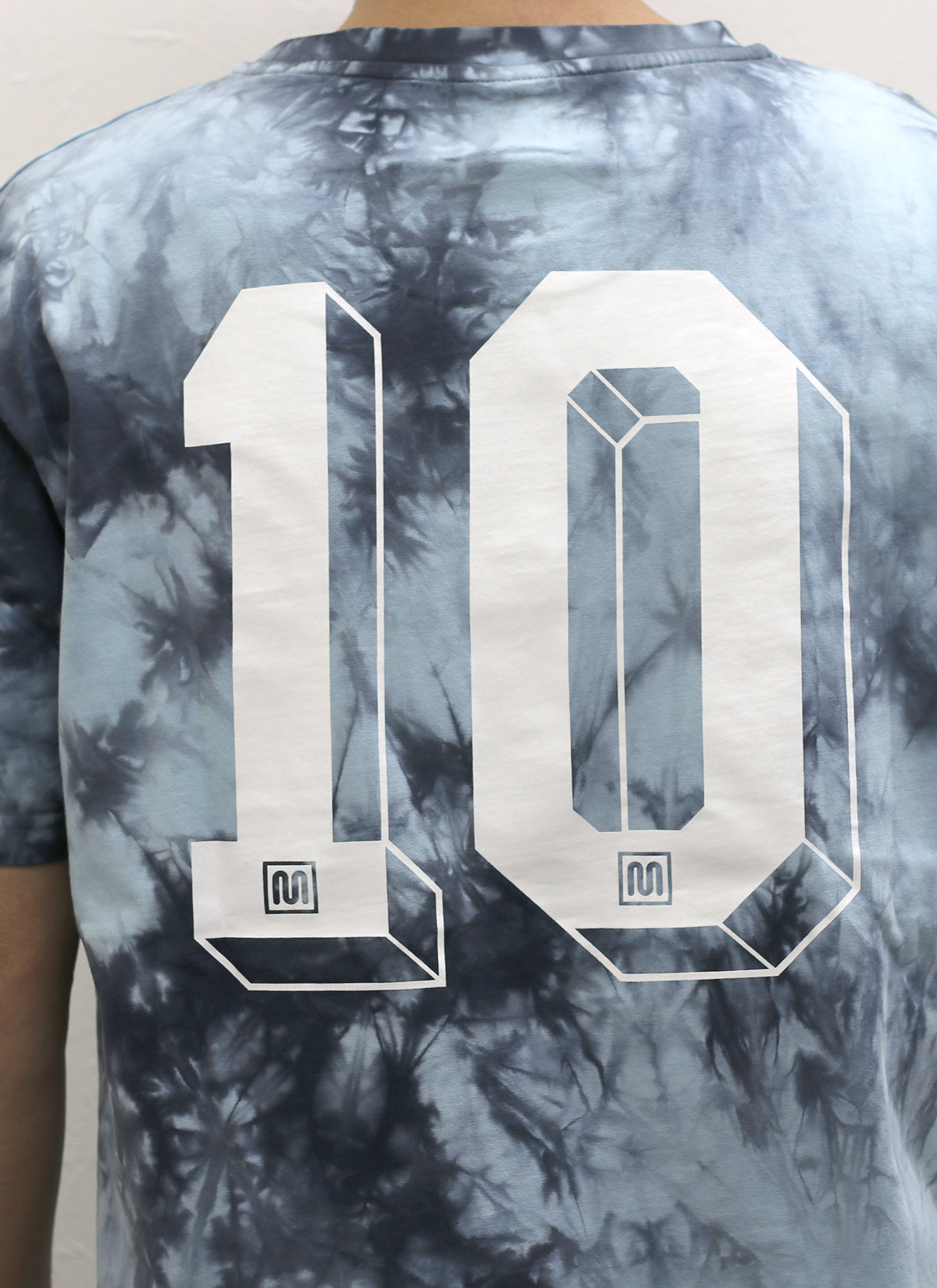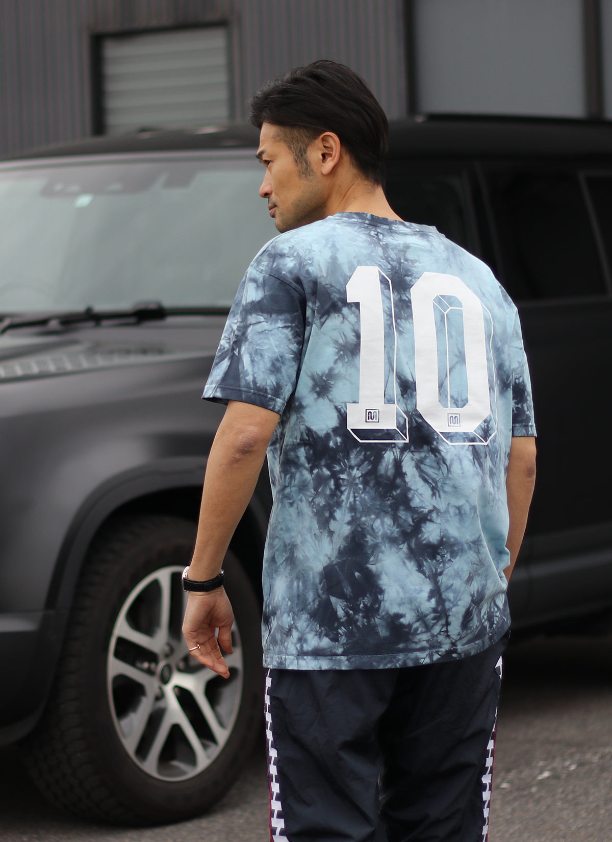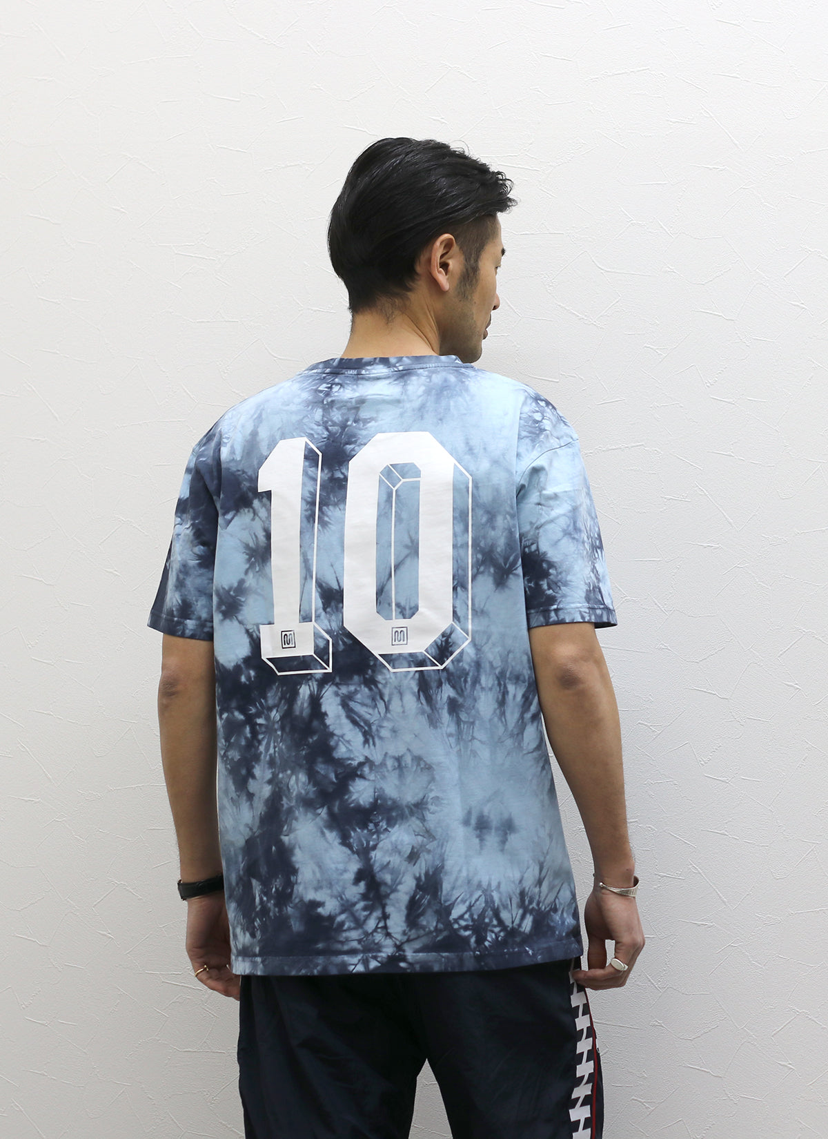 MEYBAのワンポイントロゴTシャツにタイダイ染め加工を施した半袖Tシャツ。Tシャツ一着でしっかりと個性が演出できるデザイン。背面のナンバープリントがインパクト大。一点一点染め具合が異なるランダムな色合いが特徴です。