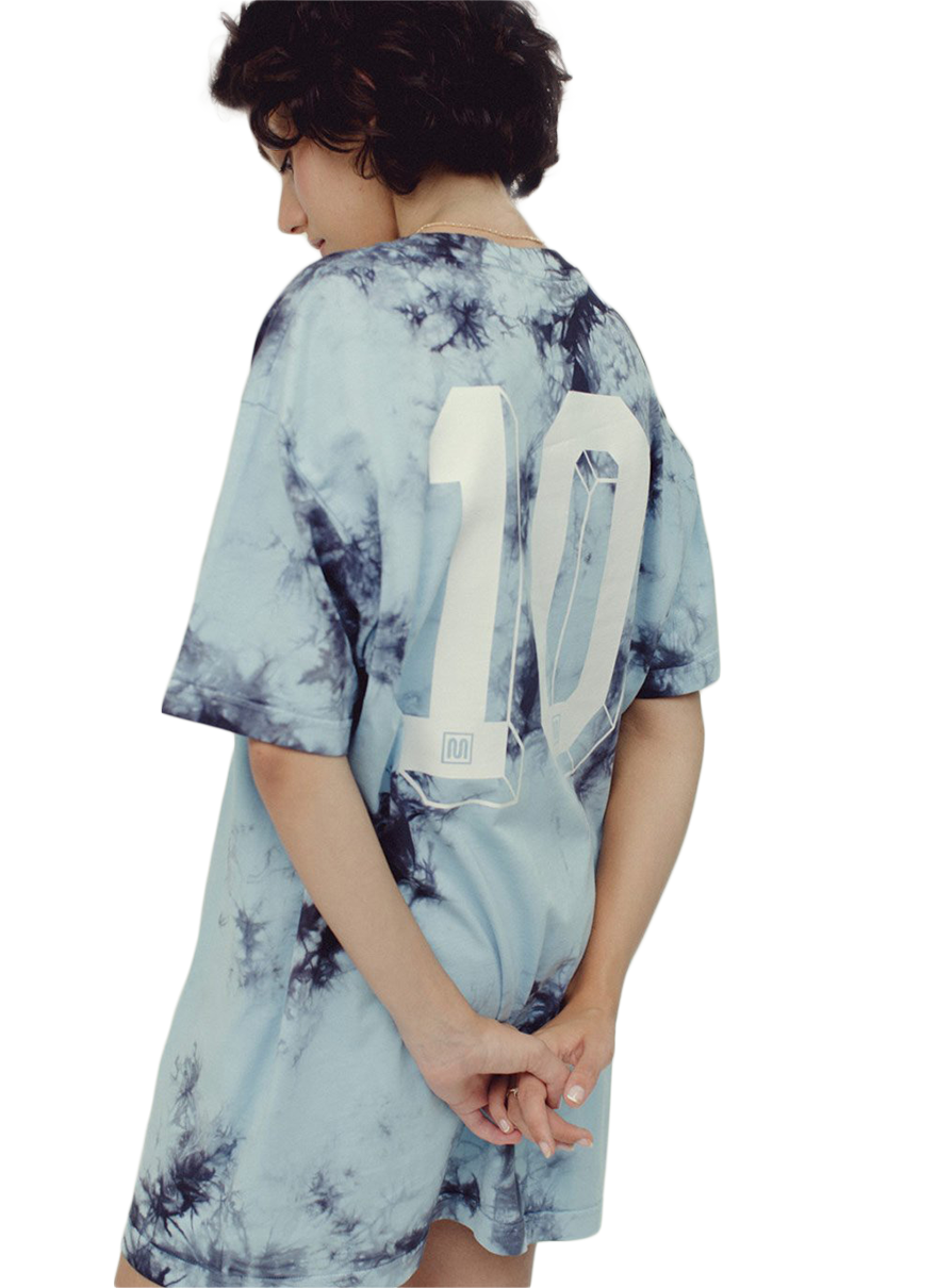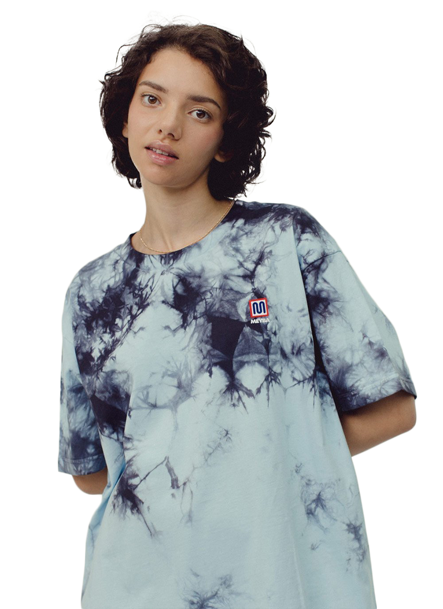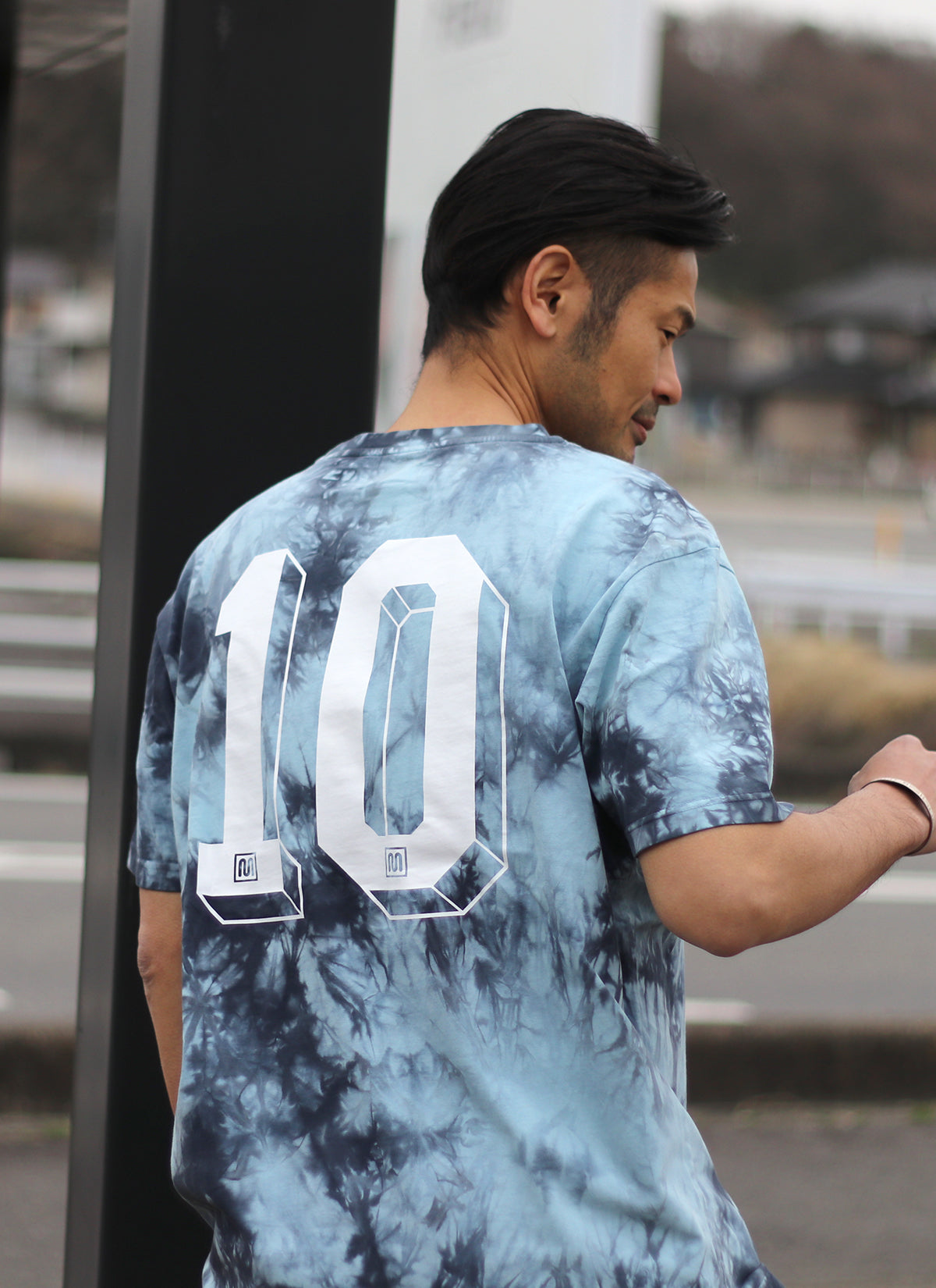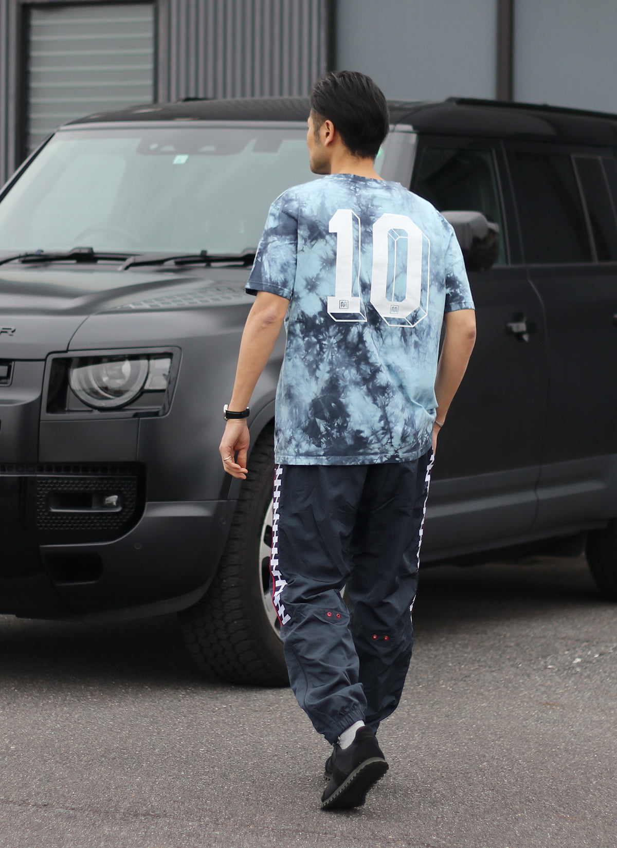 MEYBAのワンポイントロゴTシャツにタイダイ染め加工を施した半袖Tシャツ。Tシャツ一着でしっかりと個性が演出できるデザイン。背面のナンバープリントがインパクト大。一点一点染め具合が異なるランダムな色合いが特徴です。